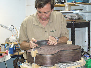 Over the next 6 years I worked on all the major US brands and quite a few handmade guitars from other builders both in Australia and the US. For someone who always wanted to know ‘how things worked’, it was the perfect training ground. I was able to understand the strength’s and weaknesses of different guitars, and assess the implications of various construction styles and how each ‘family’ sound was achieved.