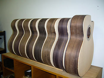 After researching as much information as I could, (which wasn’t much in 1988) I proceeded to carefully build my first guitar. In those days there was no such thing as a kit containing pre-shaped parts etc, so everything was built from scratch using a minimum of tools. I went on to build one after another, each time learning more and adding my new insights to each instrument. All my early guitars, though somewhat rough around the edges, are still in use and play very well.